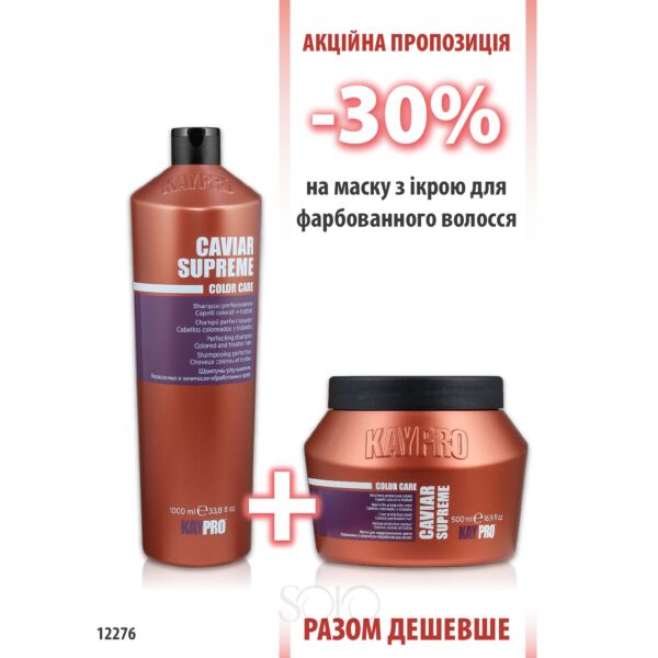 При покупці шампуню 1000 мл і маски 500 мл з ікрою для фарбованого волосся ви отримаєте знижку на маску 500 мл