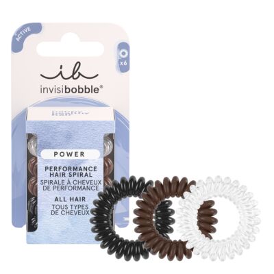 Аксесуар invisibobble Power ідеально підійде для тих, хто веде активний спосіб життя. Завдяки удосконаленій спіралеподібній формі гумка забезпечує екстрасильну фіксацію густого волосся, дозволяючи уникати пошкоджень та заломів. Має високу зносостійкість, не сповзає і не розтягується. Підходить для всіх типів волосся. До набору входять 6 гумок Power.