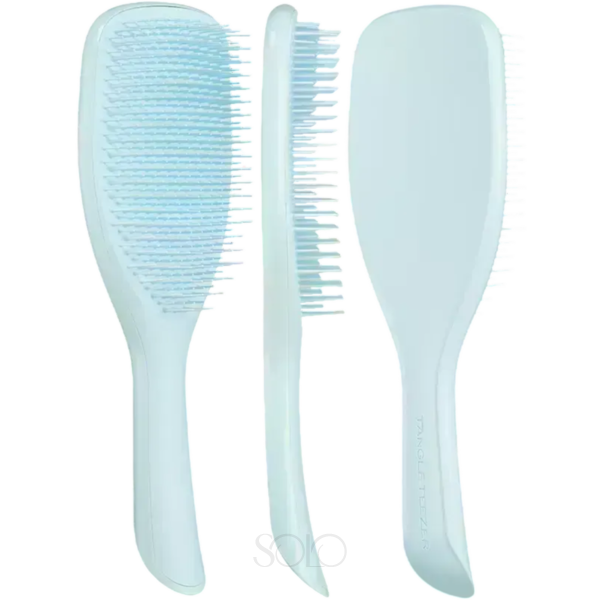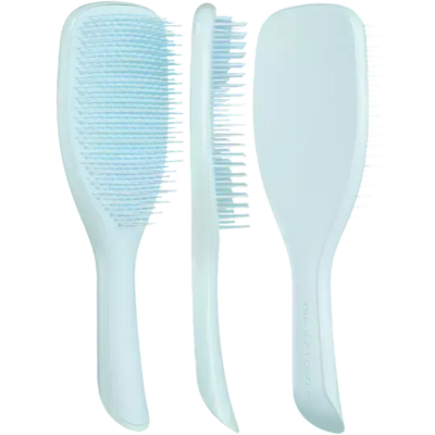 Щітка для волосся Tangle Teezer The Ultimate Detangler Large Fine & Fragile Seafoam Blue розроблена спеціально для тонкого, ламкого та пошкодженого волосся, в тому числі після фарбування або термічної обробки. Вона виконана у ніжному блакитному відтінку. Завдяки запатентованій технології дворівневих гнучких зубчиків, щітка м'яко та акуратно розплутує волосся, особливо у вологому стані. Довгі гнучкі зубчики розплутують пасма, зменшуючи ламкість і усуваючи вузлики, а короткі розгладжують кутикулу, надаючи волоссю блиск і зменшуючи пухнастість. При цьому зубчики на 20 % м'якші, ніж у моделі The Ultimate Detangler, що робить її ідеальною для тонкого та ламкого волосся. Щітка забезпечує легке та швидке розчісування, допомагає зберегти здоров'я волосся та робить його більш доглянутим на вигляд. Вона підходить як для вологого, так і для сухого волосся, а також допомагає рівномірно розподіляти засоби для догляду по всій довжині волосся. При цьому вона ефективно справляється з вузликами та залишається делікатною до чутливої шкіри голови, що особливо важливо при використанні в душі та дбайливому догляді за волоссям. Підходить для тонкого, прямого та хвилястого, а також густого, довгого та кучерявого волосся. Ергономічна ручка зручно лежить в руці та не ковзає, забезпечуючи комфорт при використанні в душі. Рекомендація: не використовуйте щітку разом з феном. Для продовження терміну служби щітки Tangle Teezer рекомендується після кожного використання видаляти з неї волосся та періодично промивати теплою водою з невеликою кількістю м'якого мила або шампуню. Після миття дайте щітці висохнути природним чином, щетиною вниз або на боці, уникайте тиску та не кладіть на неї важкі предмети.