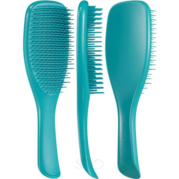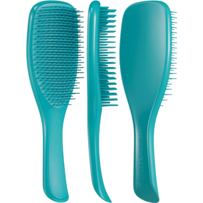 Щітка для волосся Tangle Teezer The Ultimate Detangler Transformative Teal - це універсальний і практичний аксесуар для догляду за волоссям. Вона виконана в сучасному дизайні та представлена у виразному бірюзовому відтінку - глибокому синьо-зеленому кольорі, який поєднує спокій темно-синього з яскравістю аквамарина, створюючи відчуття гармонії. Завдяки запатентованій технології дворівневих гнучких зубчиків, щітка делікатно та ефективно розплутує волосся, особливо у вологому стані. Довгі зубці дбайливо розплутують пасма, зменшуючи ламкість та усуваючи вузли, а короткі розгладжують кутикулу, надаючи волоссю гладкість, блиск та зменшуючи пухнастість. Щітка допомагає підтримувати здоровий і доглянутий зовнішній вигляд волосся, забезпечуючи легке і швидке розчісування без пошкоджень і висмикування волосся навіть у вологому стані. Вона підходить як для вологого, так і для сухого волосся, а також сприяє рівномірному розподілу засобів для догляду по всій довжині. Підходить для всіх типів волосся. Ергономічна ручка робить використання щітки максимально зручним. Вона комфортно лежить у руці та не ковзає, що особливо важливо під час використання у душі. При цьому її не рекомендується використовувати під час сушіння феном. Щоб продовжити термін служби щітки Tangle Teezer, рекомендується після кожного використання видаляти з неї волосся, періодично промивати теплою водою з м’яким милом або шампунем. Після миття дайте їй висохнути природним чином, щетиною вниз або на боці. Не піддавайте щітку тиску і не кладіть на неї важкі предмети.
