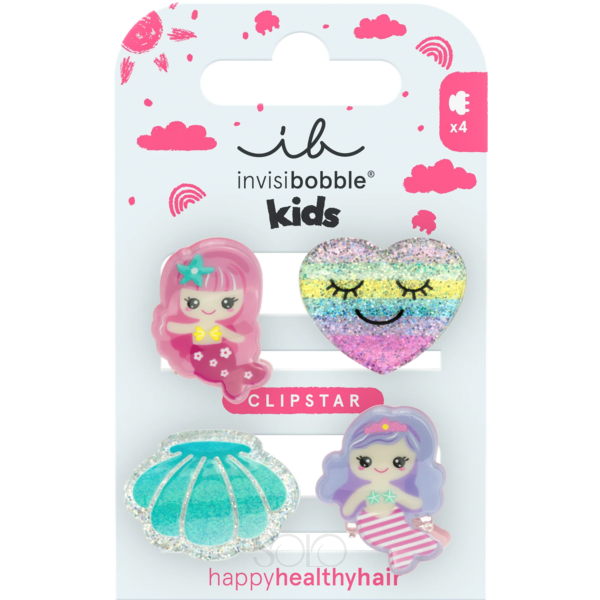 Дитячі заколки для волосся Invisibobble CLIPSTAR KIDS Mermaid Dreams - це яскравий і чарівний аксесуар для створення казкових повсякденних образів. Блискучі заколки із зображеннями русалок, сердечок і мушель надають зачісці фантастичну чарівність. Ніжні відтінки та казковий дизайн роблять будь-яку зачіску грайливою і чарівною. Виготовлені з пластику, вони акуратно і надійно фіксують волосся, не пошкоджуючи його структуру. Заколки підходять для всіх типів волосся, включаючи тонке і чутливе, не викликають дискомфорту, не тягнуть і не ламають пасма. У наборі чотири заколки з морськими мотивами: дві з русалками, сердечко з райдужним сяйвом і мушля - це відмінний вибір для щоденного використання і маленьких шанувальниць підводного світу.