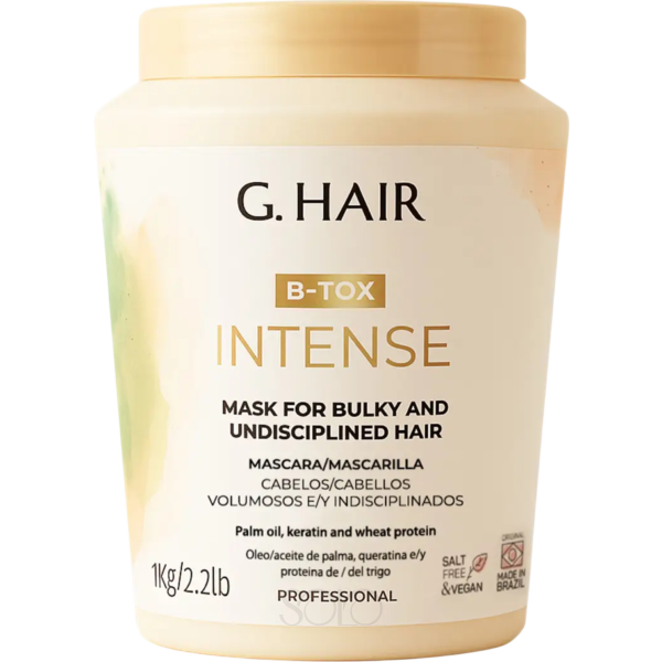 Это мощная маска, которая борется с завиваемостью волос. Ее активные ингредиенты и питательные витамины проникают в волосы, питая и восстанавливая блеск и влажность. B-Tox был разработан для увеличения эффекта уменьшения объема и выравнивания волос (бразильский кератин), способствуя уменьшению завиваемости, делая волосы более мягкими и гладкими. Формула разработана на основе жирных кислот и экстракта винограда, который богат витаминами E, C и бета каротином, увлажняет и восстанавливает структуру волос, обеспечивая выравнивание после первого использования. B-Tox G.Hair гарантирует более гладкие, здоровые и сияющие волосы. Обладает эффективным и мгновенным действием против объёма и завиваемости, делая ваши волосы шелковистыми, мягкими и интенсивно сияющими. Особая формула маски содержит уникальное количество аминокислот, витаминов, коллагена и кератина.