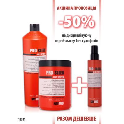 KayPro Pro-Sleek Шампунь 1000мл + Маска 1000мл + Спрей-маска 200мл