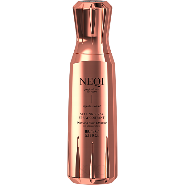Спрей для блеска и глубокого увлажнения с термозащитой NEQI Styling Spray Diamond Glass Ultimate обеспечивает максимальную защиту от влаги и придает волосам невероятный блеск! Средство содержит больше термоактивных полимеров, в отличие от золотого спрея Diamond Glass, что помогает уплотнить волосы и максимально защитить их от влаги. Обеспечивает интенсивный уход с антифриз-эффектом, придавая волосам дополнительную гладкость, шелковистость и блеск. Спрей сокращает время сушки феном, не утяжеляя волосы, благодаря своей ультралегкой текстуре. Обеспечивает надёжную термозащиту до 230°C. Diamond Glass Ultimate легко создает тренд «стеклянных волос», благодаря тому, что после его нанесения вода просто стекает с идеально гладких прядей. В основе - веганская формула без сульфатов, обогащенная комплексом Signature Blend, включающим пептиды и растительные экстракты. Этот уникальный комплекс уплотняет структуру волос, придает им эластичность и блеск.